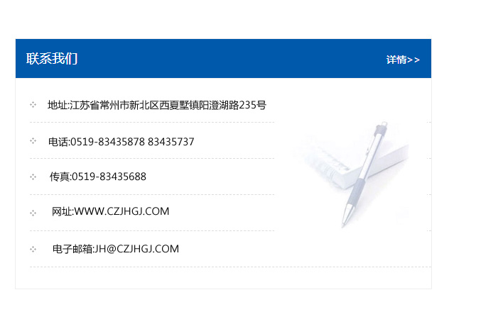 傳真:0519-83435688    郵編:213135    網址:WWW.czjhgj_com.shchuangshiji.com    電子郵箱:JH@czjhgj_com.shchuangshiji.com